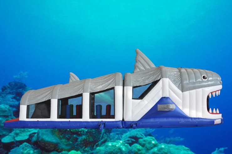 Introducing the 50ft Shark Obstacle Course with Slide, Bish-Bash and Climbing Wall!