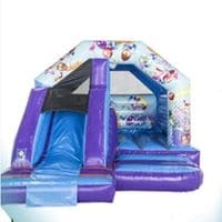 The is a classic combi castle with bounce area and built in slide! Ideal for any occasion with the Party Theme. For those with space issues this it the most compact castle that we have and fits ideally in smaller gardens with out compromising on your childs fun!!